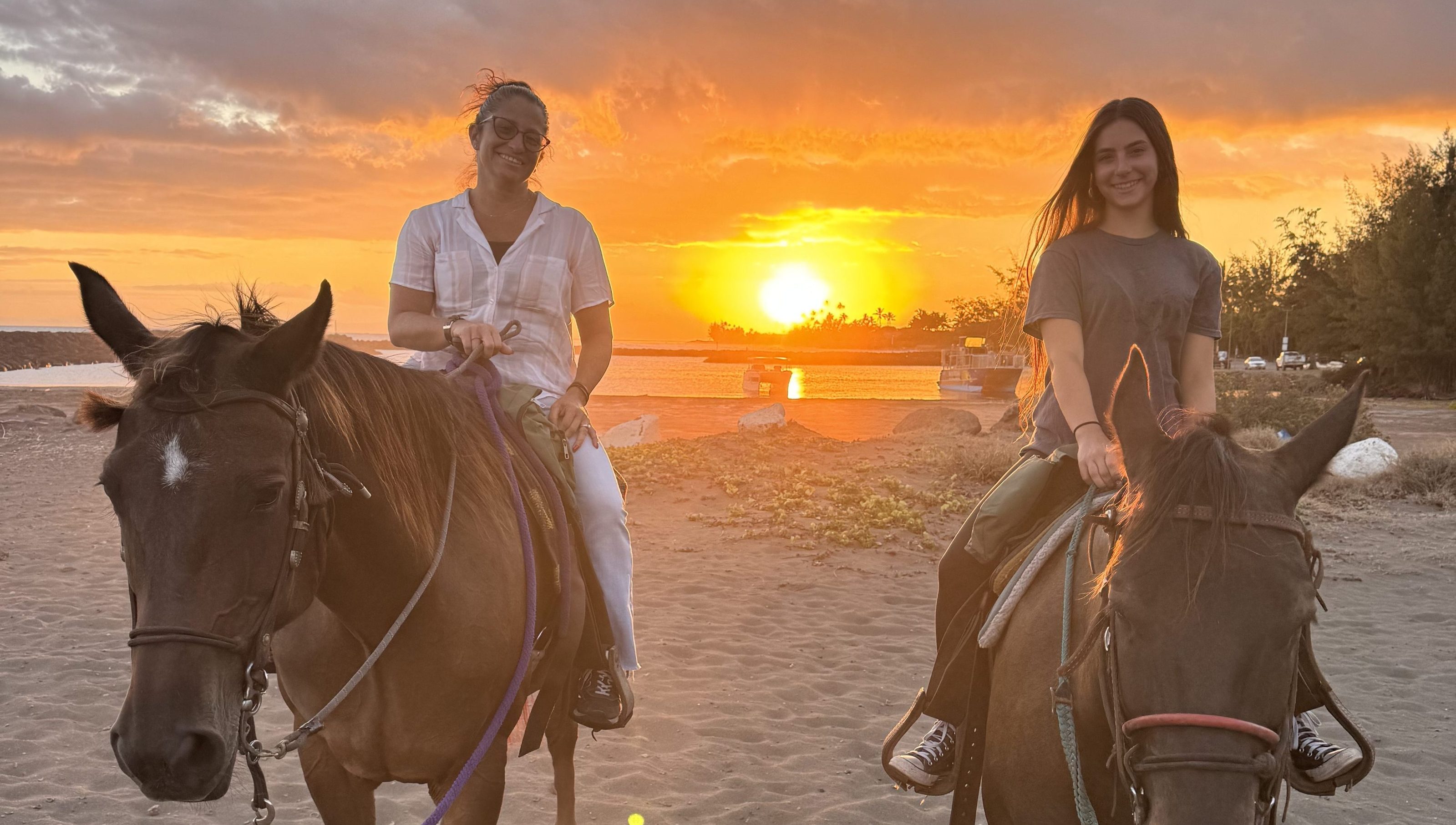 Experience the breathtaking beauty of Kauai’s evening coastline during our popular Sunset Saddle Up tour. This magical horseback riding adventure is perfect for enjoying the evening’s spectacular colors as the sun sets over the Pacific Ocean. Whether you’re a seasoned rider or a first-timer, our well-trained horses are gentle and friendly, carefully matched to suit your riding experience so you can relax and enjoy the ride. Our Sunset Saddle Up tour includes professional riding instructions, safety helmets, and refreshing cold water to keep you hydrated throughout your coastal adventure.